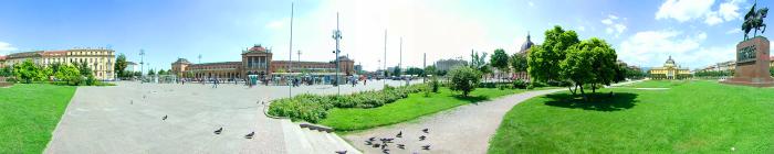 King Tomislav square is a large park with a fountain in the centre of the park. |