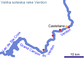 Verdon. Kraj je priljubljena izhodiščna točka za ljubitelje splavarjenja.