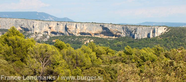 | Nad vasico Lioux je dolga skalna stena iz sivega apnenca, s spodmoli (falaise de la Madeleine), ki je 700 metrov dolga in 100 metrov visoka. To območje je del Regjskega parka Luberon. Podobna geomorfološka znamenitost so tudi spodmoli pri Sočergi v Slovenski Istri. |