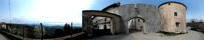 Vhodni portal v naselje. Naselje je obdano z obzidjem in sedmimi obrambnimi stolpi.