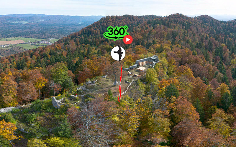 virtual excursion 360° Fridrihštajn Castle rises atop a 970-meter-high rocky hill south of Kočevje, on Mount Stojna, surrounded by the dense forests of the Kočevje region. Its location was chosen not only for strategic advantage but also for symbolic reasons — isolation, elevation, and natural protection offered privacy and tranquility. Today, the ruins are accessible via a marked trail approximately 400 meters long, taking about 30 minutes to hike. Due to its elevation, Fridrihštajn is considered the highest-situated castle in Slovenia.