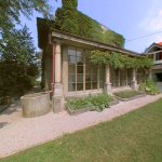 vrt - na zahodni strani hiše je arhitekt tlakoval dvorišče z ostanki kamnitih plošč; |