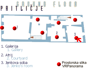 ulica - street galerija - gallery kletni prostori - cellar atrij - courtyard prvo nadstropje - first floor