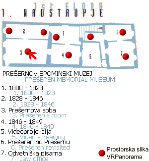 | Prešernova soba je opremljena z njegovim originalnim pohištvom, ki