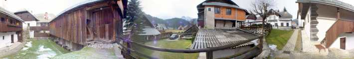 Vhod v stanovanjsko poslopje Liznjekove domačije je danes urejen z notranje, dvoriščne strani. Od tu obiskovalec pride po strmih lesenih stopnicah in ganku z okrasno rezljano ograjo v PREHODNO VEŽO.