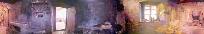 z velikim prostim "agnišem" ( ognjiščem ), ki so jo nazadnje uporabljali le še za sušenje mesa in pripravljanje svinjske krme, je bila stoletja prostor za vsakdanjo kuho in tedensko peko kruha. V velbu nad ognjiščem je ohranjena originalna kljuka za verigo ( "cigan" ) za obešanje kotla. |