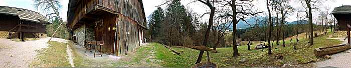 postavili tudi zidan hlev z lesenim sklednjem. Na dvorišču med hišo in