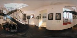 Južni čelni grajski stolp zavzeme v postavitvi celotne razstave osrednje