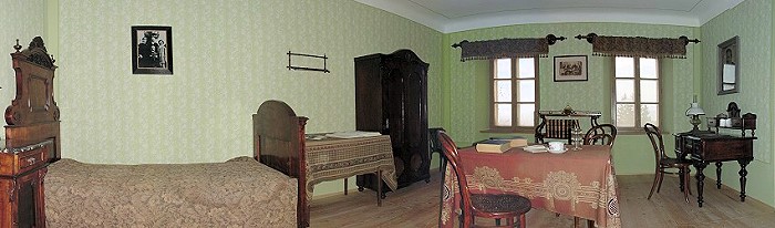 še iz dijaških let. Najprej je stanoval v gospodarskem poslopju nasproti