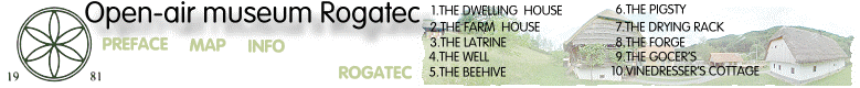 The Rogatec Open-Air Museum was nominated European Museum of the Year in 1997. In the future we plan to enlarge the museum (as set out in the 1998 Expansion Plan) with the presentation of varied architectural and cultural heritage: the houses of smallholders and stone cutters, a stone cutter's hut, a wine cellar and a drying room for fruit and flax. The Rogatec Open-Air Museum aims to preserve cultural, architectural, ethnological, regional and historical values and to present culture heritage both in situ and through multi-media, educational demonstrations and research work. |