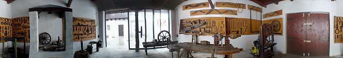 KOVAŠKO-KOLARSKA DELAVNICA Na podeželju so kovaško-kolarske delavnice delovale v tesni povezavi s poljedeljstvom in vinogradništvom. Manjše delavnice, največkrat podedovane z vso opremo vred, so vodili gospodarji, s sinovi ali moškimi sorodniki kot pomočniki. Takšne delavnice so bile bolj nekakšne popravljalnice, v katerih so krpali polomljeno poljedeljsko orodje, podkovali konje, okovali podvozja vozov, izdelovali platišča koles in železno opremo za stavbe. Sprejemali so manjša naročila za sorodnike ali sovaščane, bolj spretni pa so v večjih in bolje opremljenih delavnicah izdelovali in popravljali orodje tudi za širšo okolico, posebno še, če so se izurili kot izdelovalci vozov, vinskih stiskalnic in sodov ter jarmov za vprego živine, kar je bilo predvsem v domeni kolarjev. |