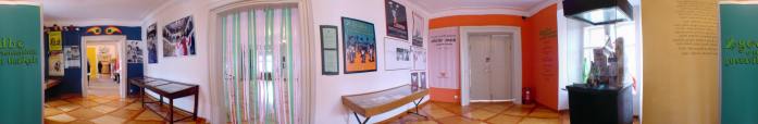 Plakati muzejskih razstav in publikacij na temo maskiranja, filatelistični kotiček z znamkami s podobo koranta.