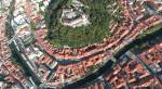 Testna različica prikaza Slovenske pokrajine iz zraka s prostorskimi slikami. Testno vzorčenje prikazuje vzhodno območje Ljubljane od Fužinskega gradu do starega mestnega jedra. |