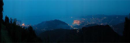 Tinjan - nočna panorama na Miljski polotok in območje od Kopra do Trsta (od leveproti desni). Tinjan - the night vista to the penincula of Milje and the coastline from Koper (Capodistria) to Trst (Trieste).