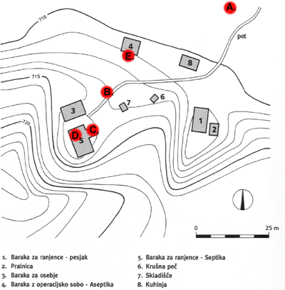 oz. okrevališče, imenovano Hrastnik. Delovalo je v edini nepožgani hiši
