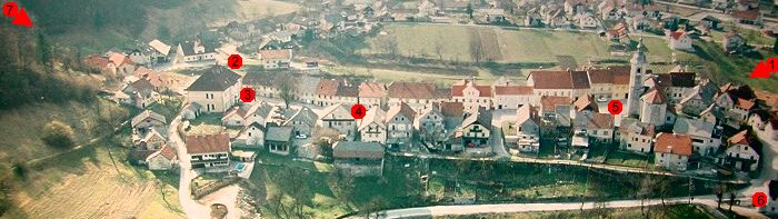 obzidje s stolpom. Nad naseljem so razvaline nekdanjega Starega gradu.
