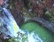strme, 80 m visoke stene spusti do dna. Slap nima tolmuna in voda teče