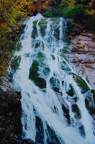 preide v morda najvišji lehnjakov slap na svetu. Ob večjih sušah voda le