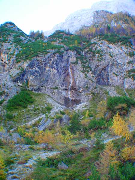 Slemenova špica (1909 m). Water flows in several waterfalls with the first