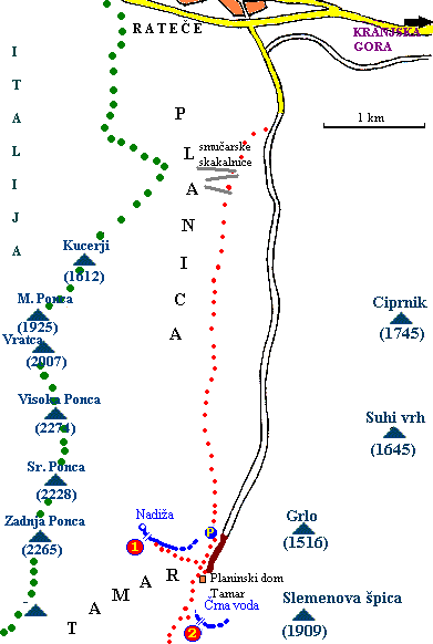 Planici in naprej v Tamar (5,5 km od Rateč). V Tamarju vodi od Planinskega