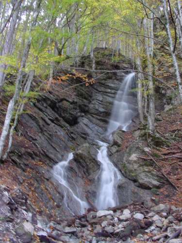šumi ter dva slapa. Spodnji Rastočki slap je od daleč viden kot