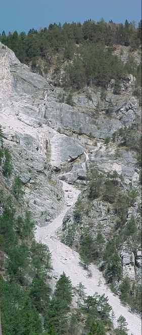 Riverbed of the brook is ,wet' in all seasons of the year but waterfalls can be seen only between the March and May. Height of the waterfalls is 50- m ( ~ 160 ). ACCESS: Road Jesenice - Kranjska Gora. Place Belca - Karavanke direction. From the sawmill is a fine view to the cliff with the waterfalls. No climbing is recommended. Med Vretovim vrhom (1629 m) in Jurčkovim vrhom (1505 m) se vije Vršni graben. Voda tu hitro odteče zato je potoček nestalen - skale ,moči' sicer celo leto, toda slapovi so opazni le od marca do maja ter po močnejšem deževju. Slapišče je lepo opazno iz kraja Belca, približamo pa se mu lahko od žage, tik pred samim vstopom v sotesko Belce. Slapišče je izrazito med pečinami (50- m), nakar se voda izgubi pod divjim meliščem. Plezanje po pečinah ni priporočljivo - dovolj je ogled iz doline. DOSTOP: Cesta