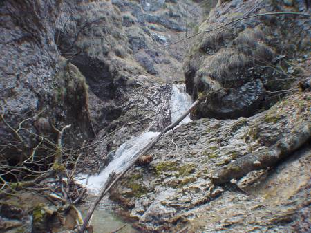 Entrance into ravine: lower waterfal - height: 10 Vhod v sotesko: spodnji šum "V kotu" - višina 3 m |