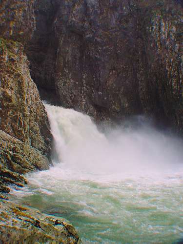 Spodnji slap pod naravnim mostom med Malo in Veliko dolino The lower waterfall below the natual bridge between the Mala and Velika dolina (Little and Great valley) |