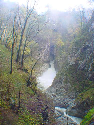 Spodnji slap pod naravnim mostom med Malo in Veliko dolino The lower waterfall below the natual bridge between the Mala and Velika dolina (Little and Great valley) |