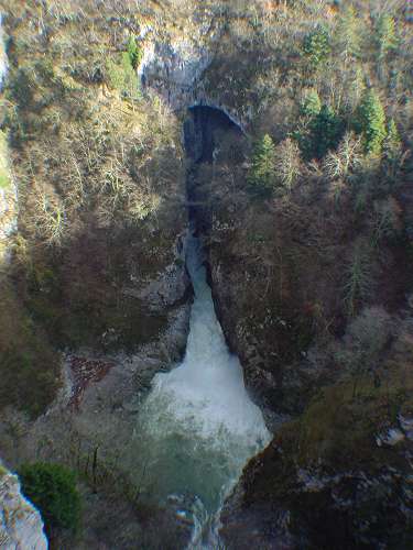 Spodnji slap pod naravnim mostom med Malo in Veliko dolinoThe lower waterfall below the natual bridge between the Mala and Velika dolina (Little and Great valley) Pogled na spodnji slap pod naravnim mostom Velika dolina Višina slapa: ~ 10 m A view to the lower waterfall below the natural bridge Velika dolina (Great valley) Height: ~ 33 |