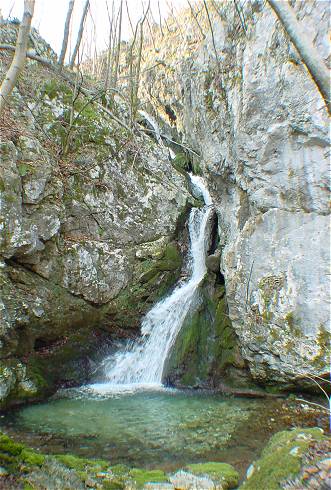 Stopnik is a left affluent of Idrijca. Waterfall is only 20 m from road.