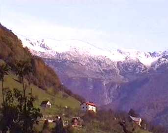 je zelo lep razgled po dolini proti Tolminu. Spustimo se na levo do hiške.