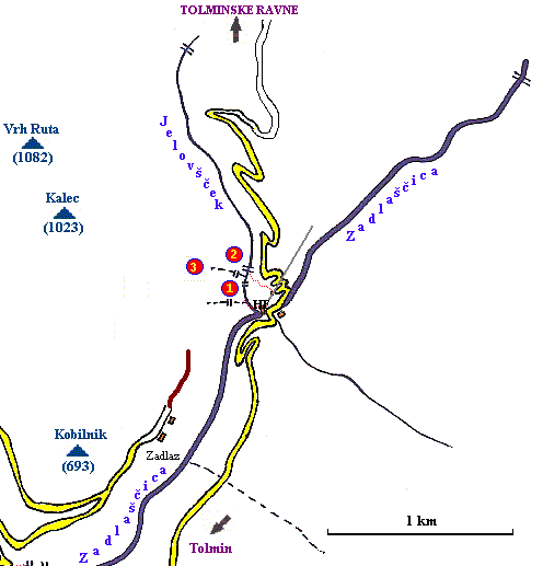 nad strugo Zadlaščice. S ceste je ves čas lep pogled na sotesko Tolminke