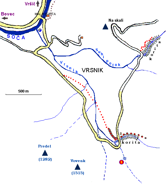 Vrsnika in Sočo). Po približno 2 km pridemo do ostrega ovinka ceste proti