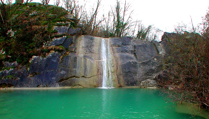 pool of the waterfall. The bed of the brook is usually dry during the summertime