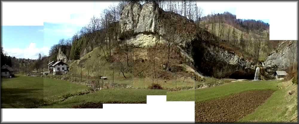 s slikovitimi pečinami. Okolica slapa z značilnim previsom je naravnost