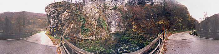 | Kraški izvir Bilpa je voda reke Rinže, ki teče skozi mesto Kočevje in takoj za mestom ponikne. Izvir se izteka kot levi pritok reke Kolpe. Karst spring Bilpa is actually water from Rinza river which flows through the Kocevje town. Water flows into the Kolpa river as a left tributary. |