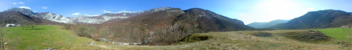 The Polog pasture: vista from the top of the abandoned bunker. Such bunkers were a part of the defense line Vallo alpino del littrio in thirtieth of the 20th century. |
